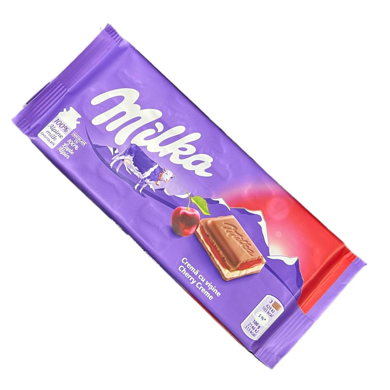 Шоколад Milka Cherry cream с двухслойной вишневой и сливочной начинками - это нежный молочный шоколад с ароматным вишневым вкусом.