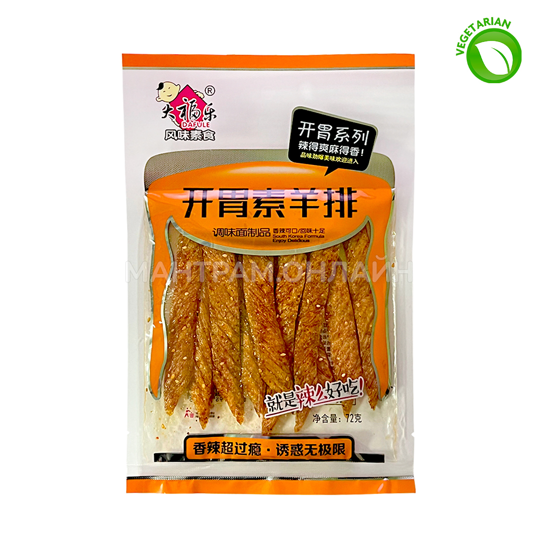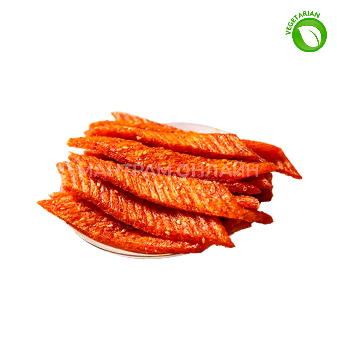 Состав: мука пшеничная, вода, масло растительное, порошок соевых пищевых волокон, сахар, соль, кунжут, перец чили, усилитель вкуса: глутамат натрия(Е621); увлажнитель: глицерин(Е422); подсластитель: сукралоза(Е955); регулятор кислотности: лактат натрия(Е325); краситель: перец красный.