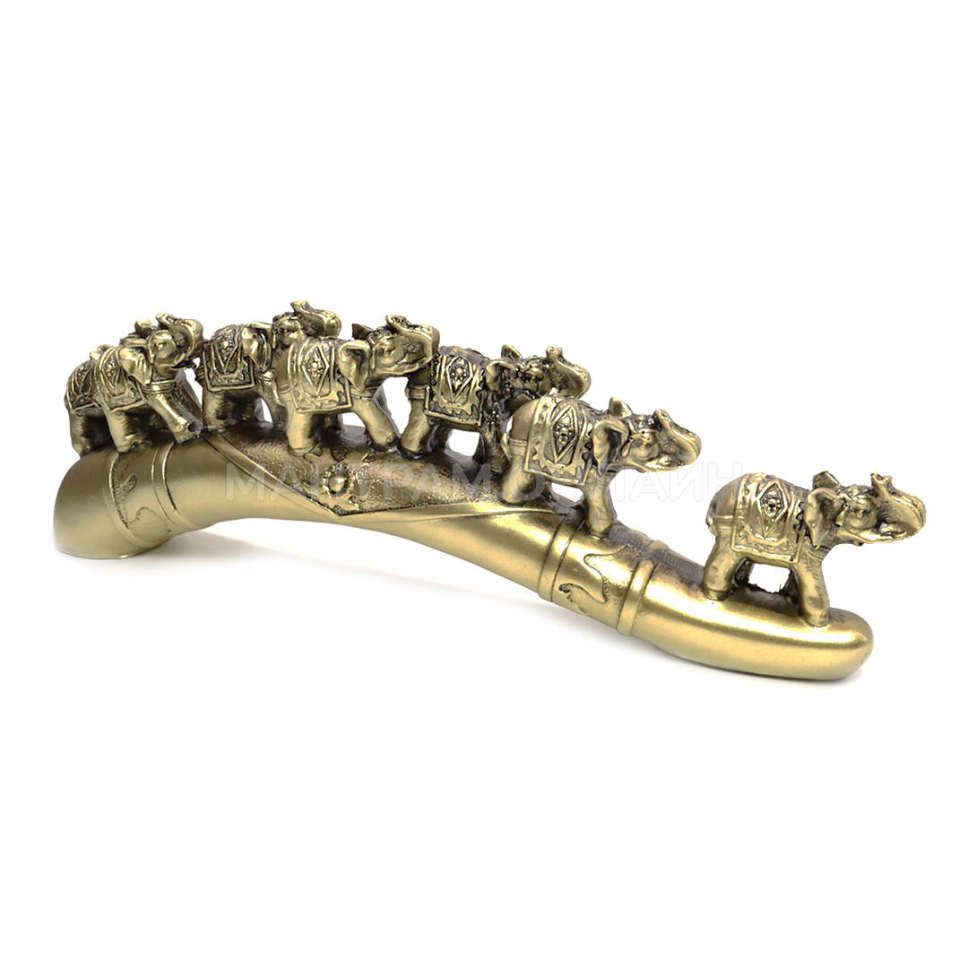 Декоративная статуэтка "Семь Слоников" выполнена из полистоуна с имитацией бронзового покрытия. Композиция изображает семь слонов, идущих друг за другом. Слон — олицетворение целеустремлённости, упорства, мощи и силы. Число семь в фэн‑шуй символизирует "Чашу, полную гармонии": помогает в исполнении добрых желаний и достижении целей; способствует успеху в делах.