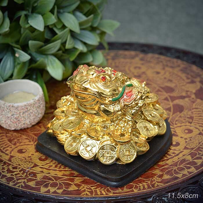 Статуэтка Фен-шуй Жаба на монетах на подставке 8 см
