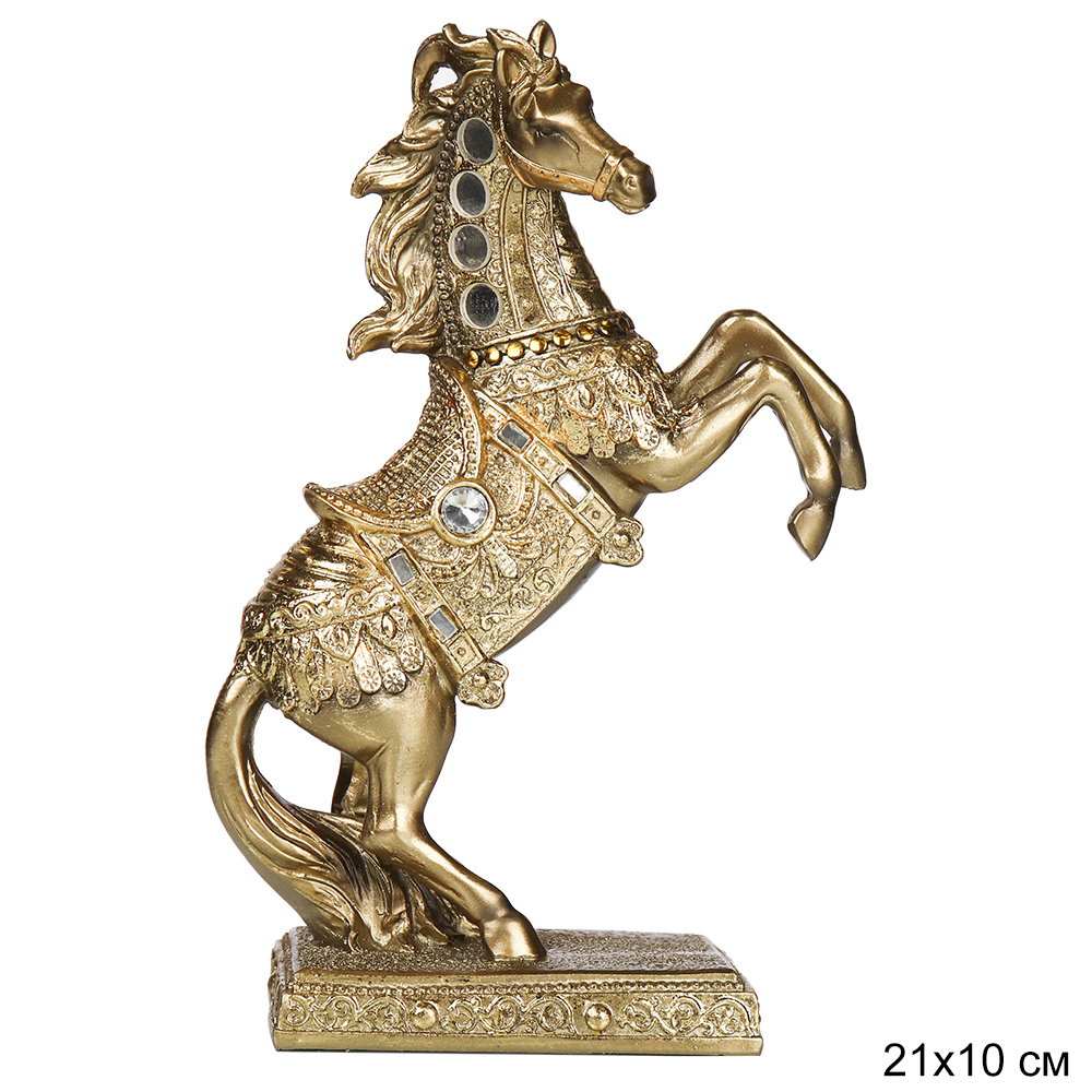 Статуэтка Лошадь на подставке на дыбах, цвет золотистый, зеркала, блестки, полистоун 21,5 см