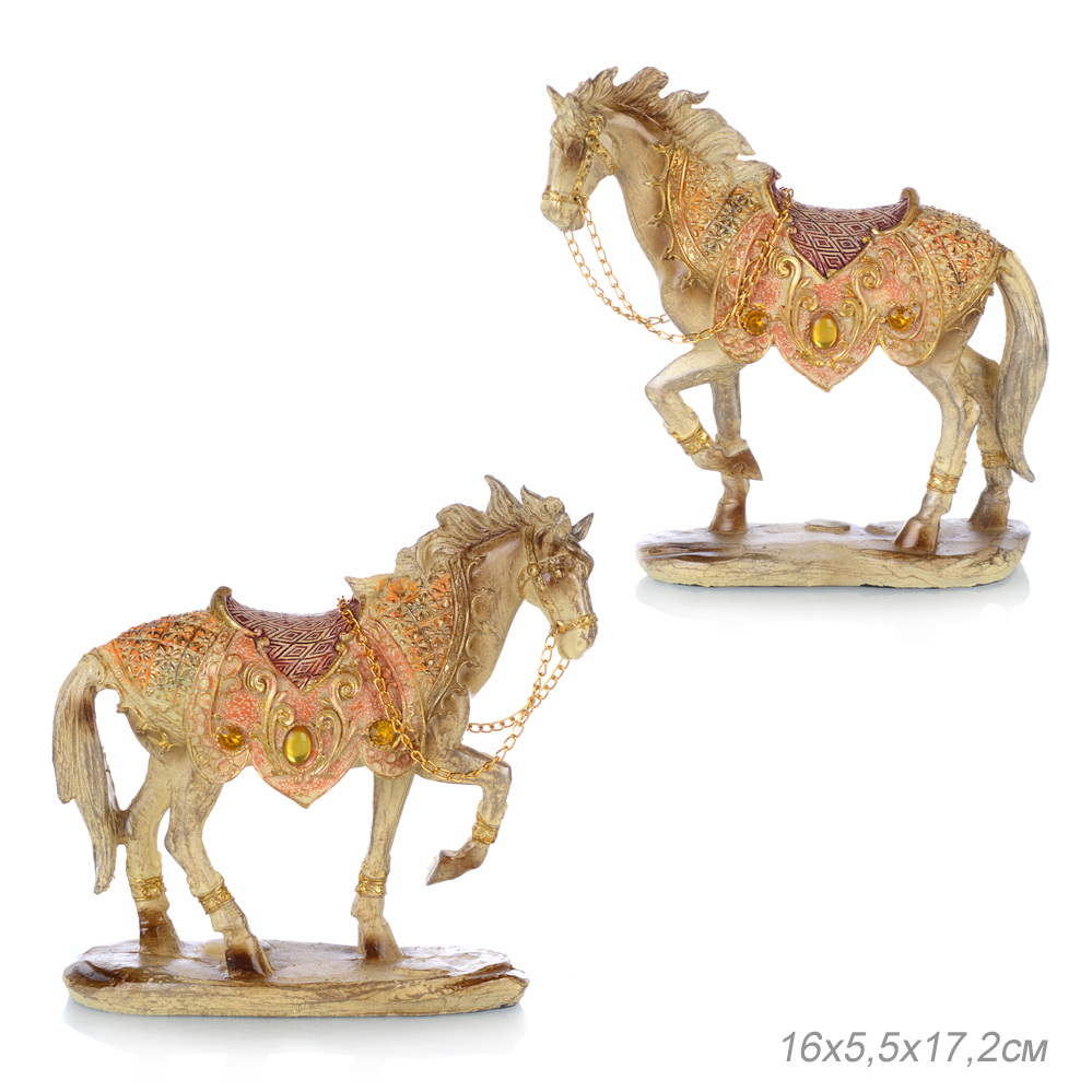 Статуэтка Лошадь с блестками кристалл круг золотистый поводья цепь золотистая цвет бежевый 18 см