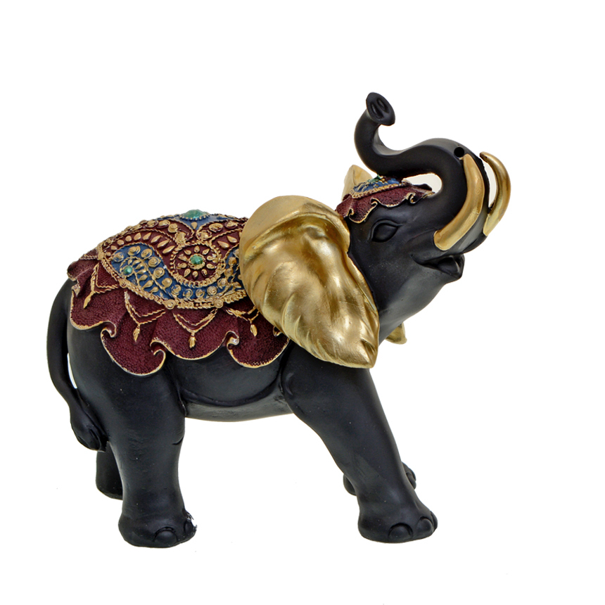 Статуэтка Слон черный в попоне смотрит вправо, уши золотистые, полистоун 20 см