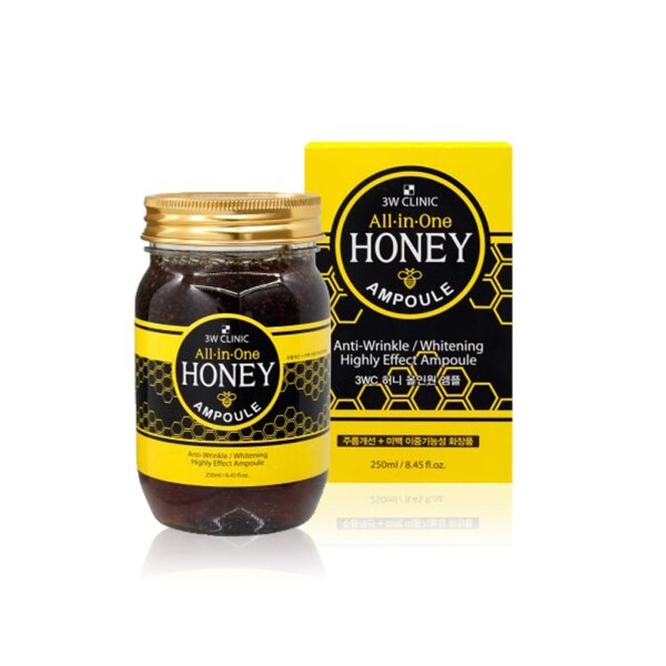 ALL in One HONEY AMPOULE Сыворотка для лица ТМ 3W CLINIC Многофункциональная сыворотка для лица с медом способствует глубокому увлажнению вашей кожи и препятствует возникновению покраснений и шелушений, а также обладает лифтинговым эффектом.это настоящая находка для обладательниц проблемной кожи, склонной к шелушениям и покраснениям. Сыворотка тонизирует, питает и увлажняет кожу, устраняет мелкие неровности и морщины, а также пигментные пятна.