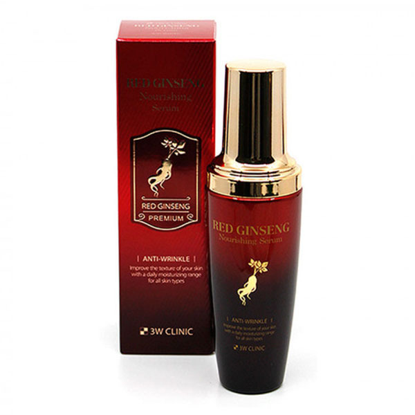 Red Ginseng Nourishing Serum Сыворотка для лица и шеи ТМ 3W Clinic Сыворотка содержит корень женьшеня, благодаря которому усиливается циркуляция крови и запускаются процессы регенерации кожи, улучшается эластичность и тонус. Средство делает тон кожи ярким и здоровым, устраняет признаки преждевременного старения. Кроме женьшеня в состав сыворотки входят ниацинамид и аденозин, которые осветляют пигментацию и разглаживают морщины, делают кожу чистой и здоровой.