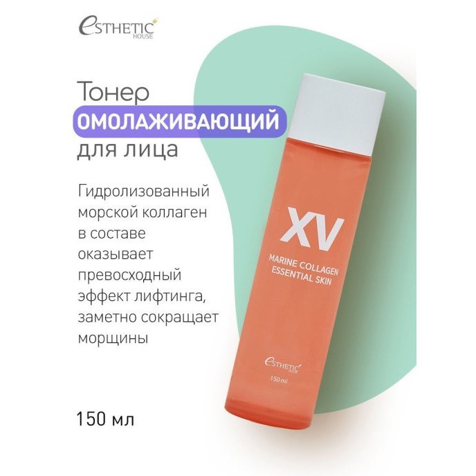 Marine Collagen Essential Skin Тонер для лица ТМ ESTHETIC HOUSE Освежает и тонизирует кожу лица, нормализует уровень pH кожи после умывания, готовит ее к последующим этапам ухода. Основной компонент тонера - морской коллаген (150,000ppm), который в сочетании с трегалозой увлажняет кожу, устраняет сухость, шелушения и чувство стянутости после умывания. Экстракт морских водорослей, красной икры и аденозин обладают анти-эйдж эффектом, повышает упругость и тонус кожи.
