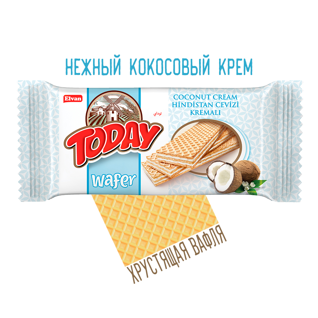Today Wafer Coconut Cream - это хрустящие вафли с нежным кокосовым кремом, которые приятно удивят вас своим вкусом и ароматом. Вафли Today с кокосовым кремом - это идеальный выбор для любителей вкусных хрустящих десертов. Благодаря индивидуальной упаковке, их удобно брать с собой в дорогу, можно легко насладиться за чашечкой кофе или разделить с друзьями.