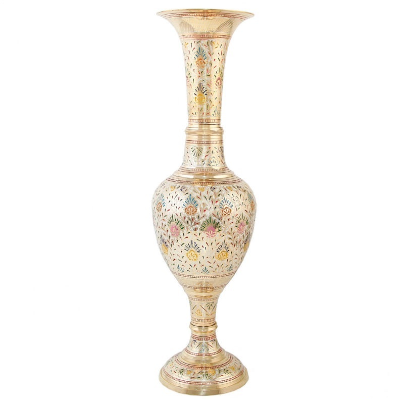 Ваза кашмирская (С.J.C ) латунь, белая эмаль, 53 х 16 х 16 см