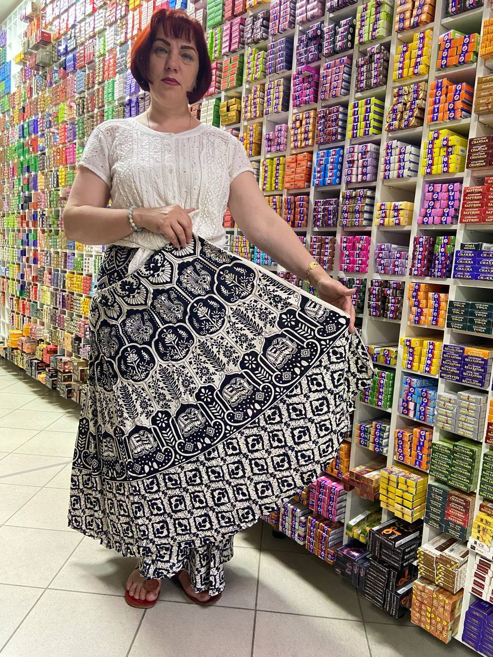 Юбка на запах хлопок Павлин слоны цветы цвет черный белый free size (40-52) 474786