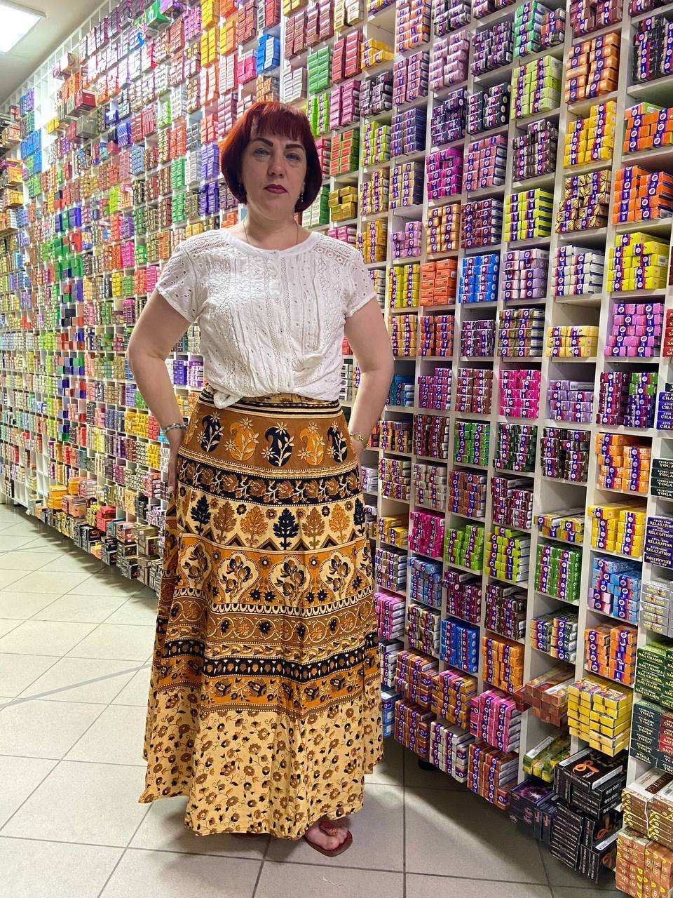 Юбка на запах хлопок Цветы деревья цвет бежевый коричневый желтый черный free size (40-52)