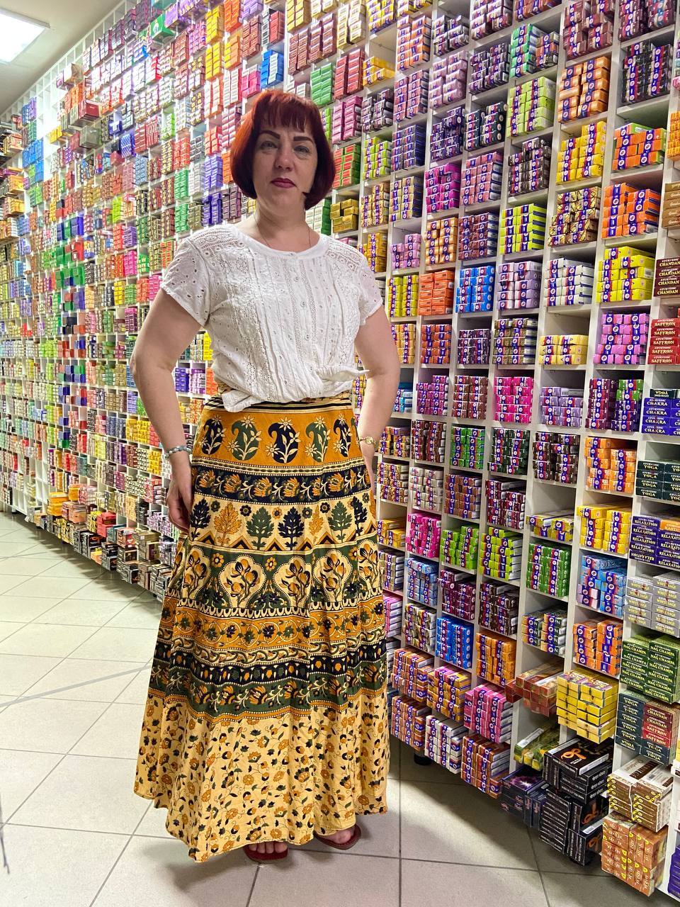 Юбка на запах хлопок Цветы деревья цвет бежевый зеленый желтый черный free size (40-52)