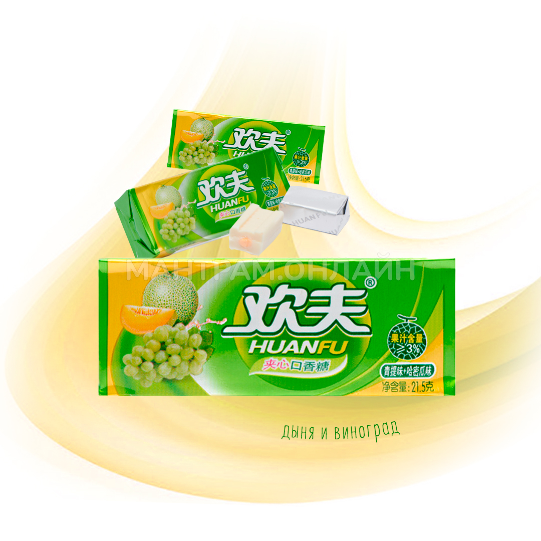 Жевательная резинка Huanfu со вкусом дыни и винограда подарит яркий вкус и новые эмоции.